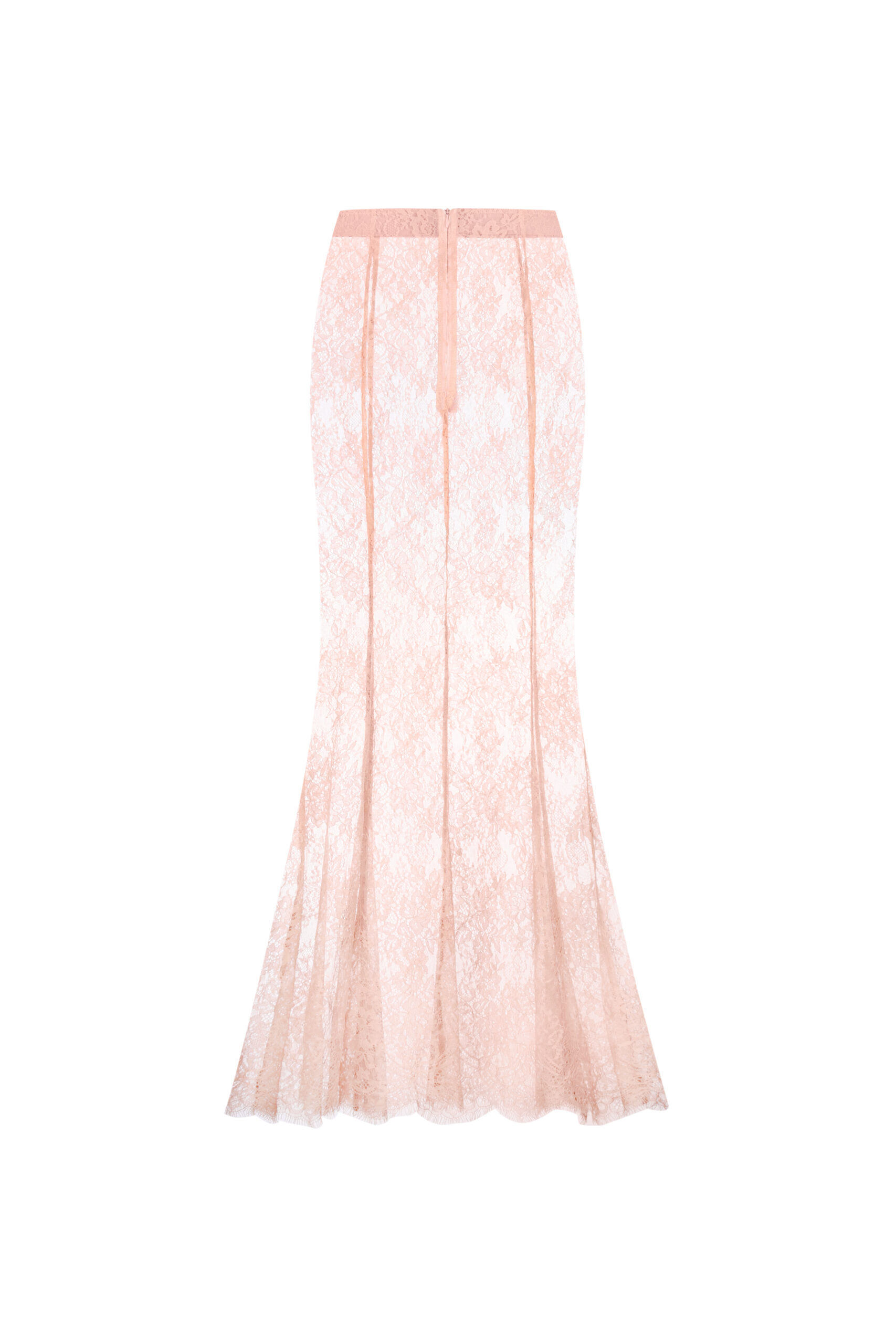 Елегантна спідниця-годе з тонкого мережива Шантільї підкреслить жіночність та витончений стиль. Напівпрозора тканина у поєднанні з плавним розкльошеним кроєм створює вишуканий силует, ідеальний для особливих подій. Легкість і повітряність мережива роблять образ по-справжньому розкішним.