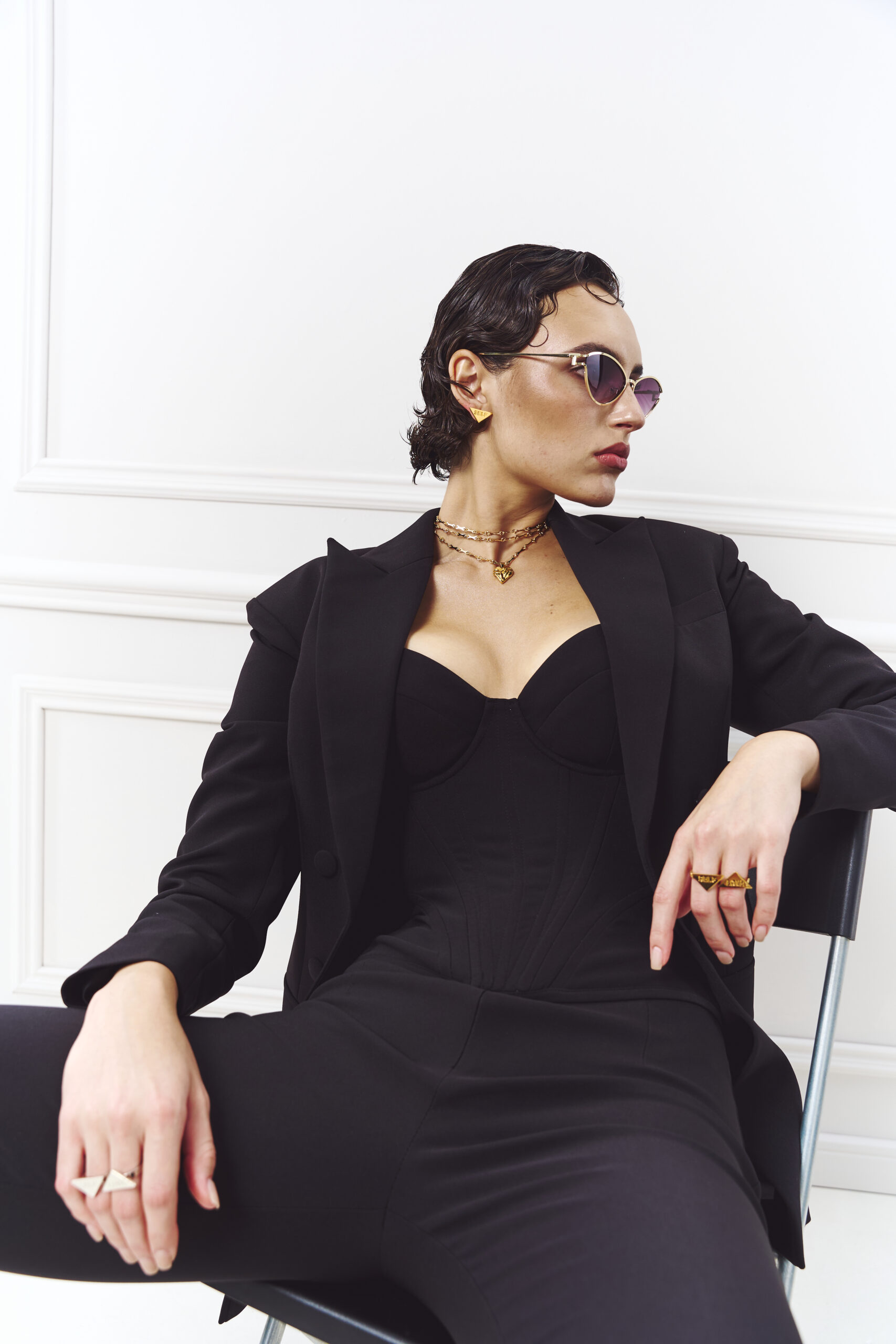 Стильний корсет з якісної костюмної тканини — ідеальний вибір для створення елегантного або вечірнього образу. Завдяки формованим чашкам і чітким швам, він ідеально підкреслює силует та додає впевненості. Щільна тканина тримає форму, забезпечуючи комфорт та підтримку протягом усього дня. Ідеально поєднується як зі спідницями, так і з брюками.