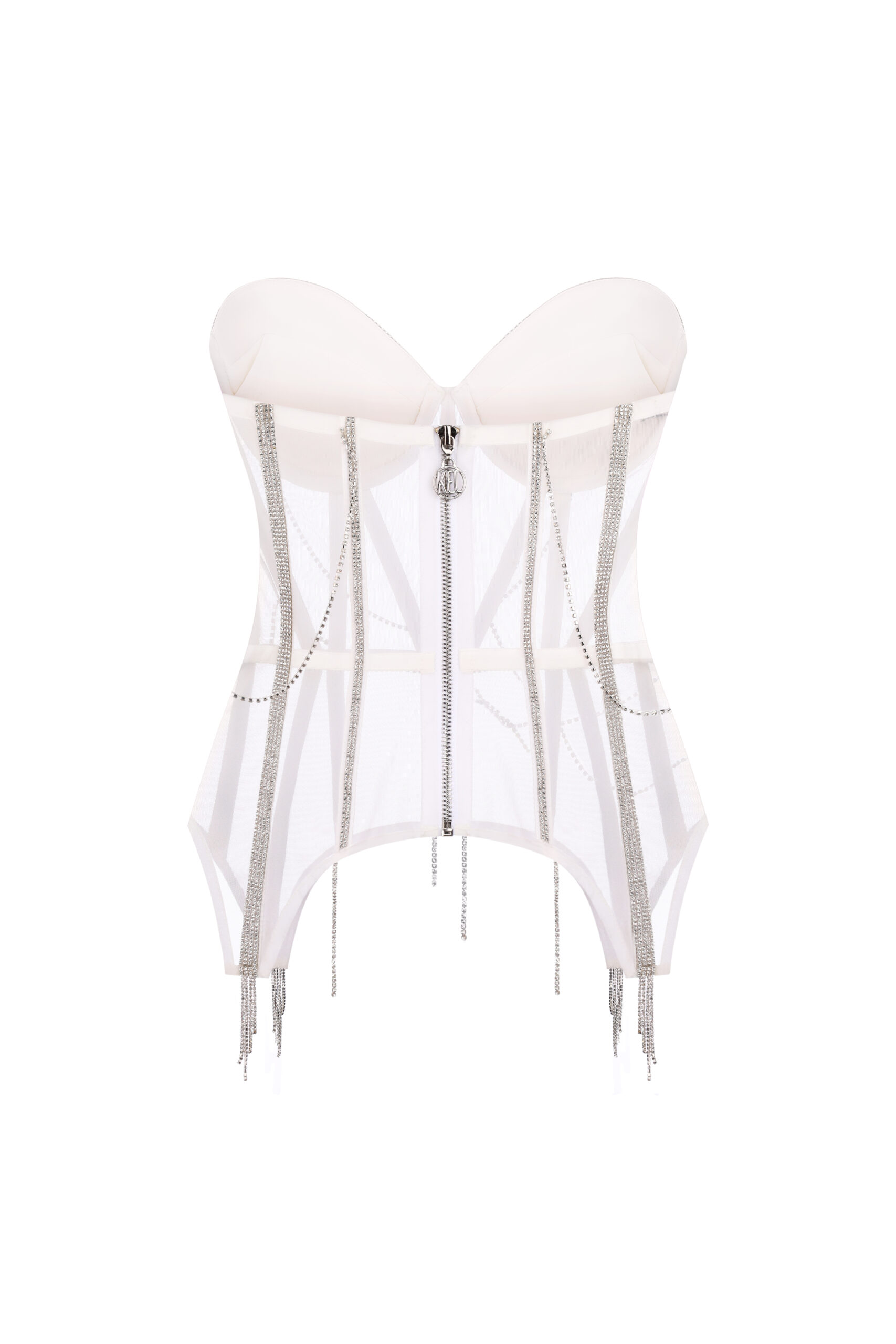 Корсет з чашкою та декоративними пажами. Застібка на шнурівці. Можливий додатковий пуш-ап.