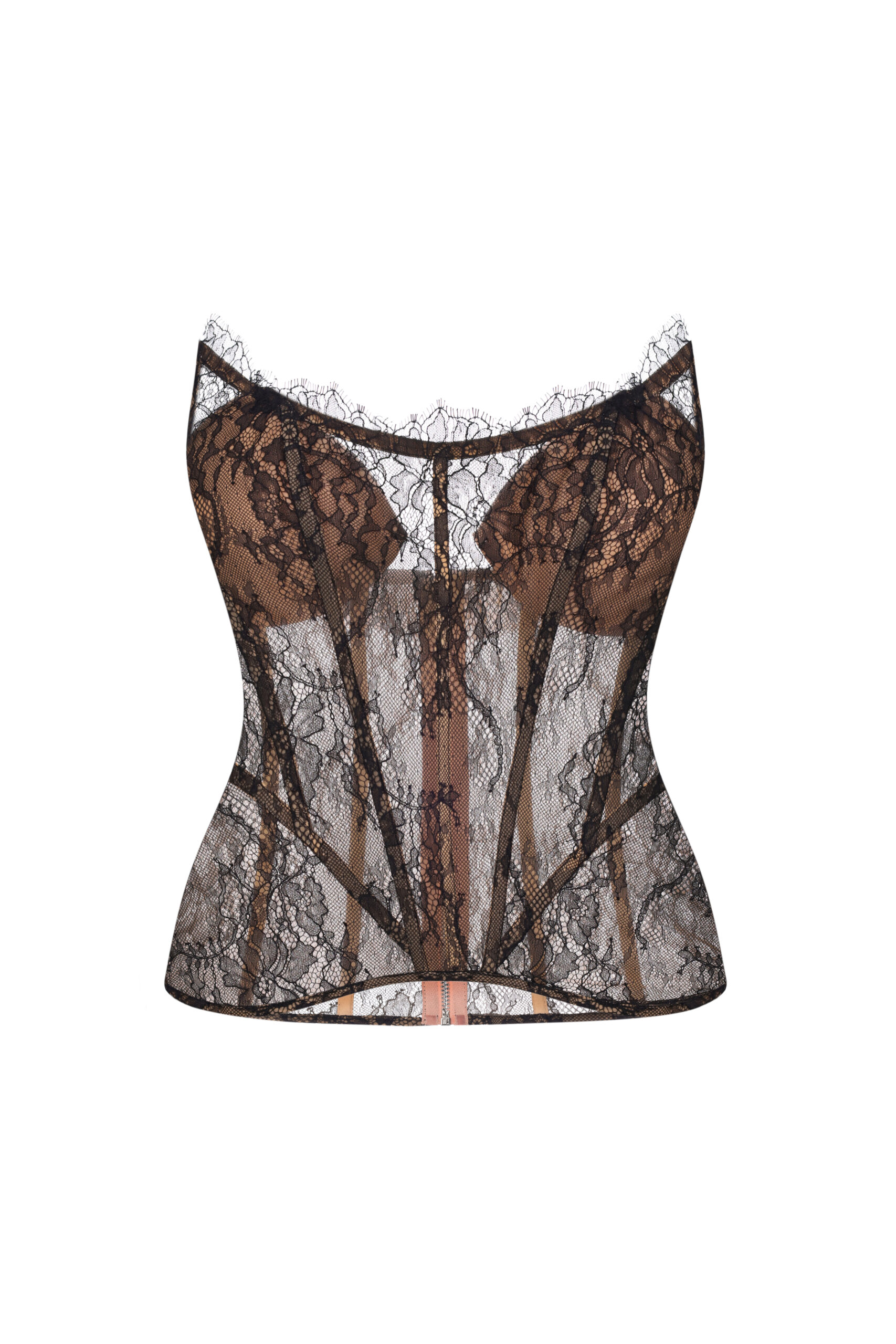 Вишуканий корсет із ніжного мережива створює витончений силует і підходить як для самостійного образу, так і в поєднанні з жакетом або блузою. Ідеально підійде для романтичних або святкових образів. Гнучкі металеві кісточки забезпечують ідеальну посадку та підкреслюють лінію талії. На спинці – функціональна застібка-блискавка.