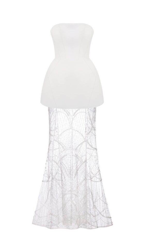 Для фігури “пісочний годинник” найкраще підходять приталені сукні в підлогу, які акцентують увагу на тонкій талії.